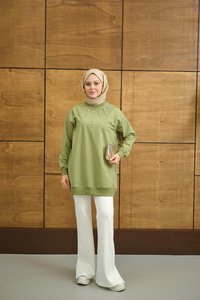 Yaka Taş Detay Tunik Yeşil