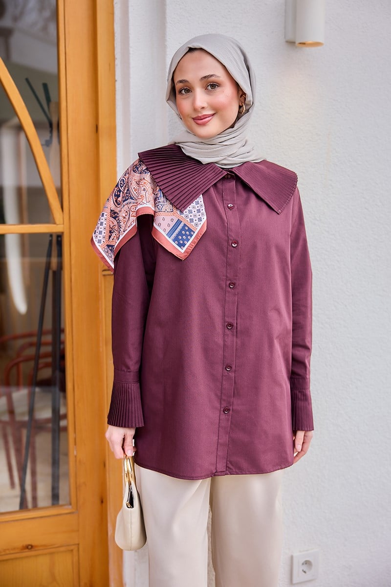 Yaka Ve Kol Pilise Detaylı Gömlek Bordo