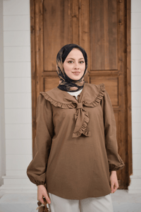 Yakası Fırfırlı Basic Gömlek Kahverengi