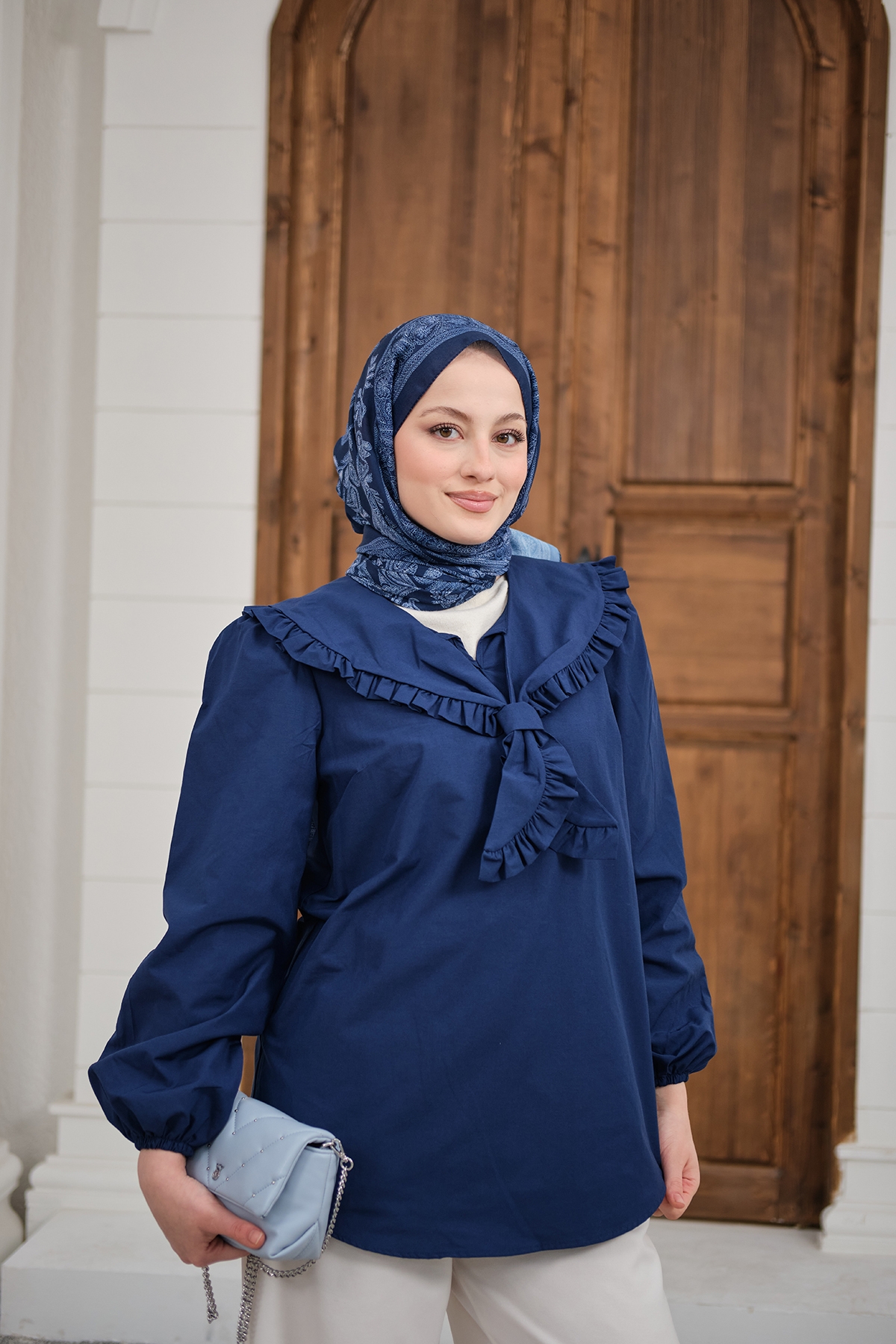 Yakası Fırfırlı Basic Gömlek Lacivert
