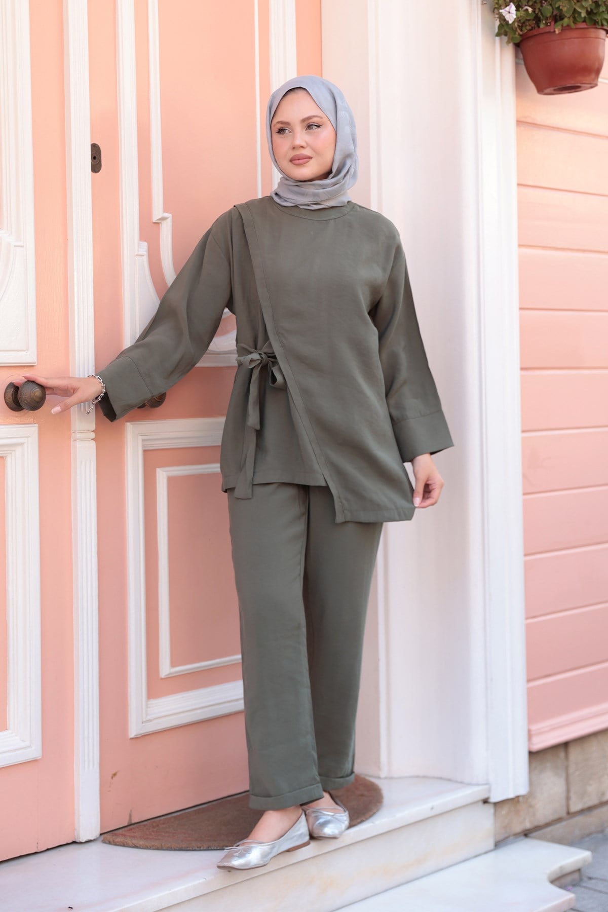 Yandan Bağlamalı Armani Modal Takım Haki Yeşil