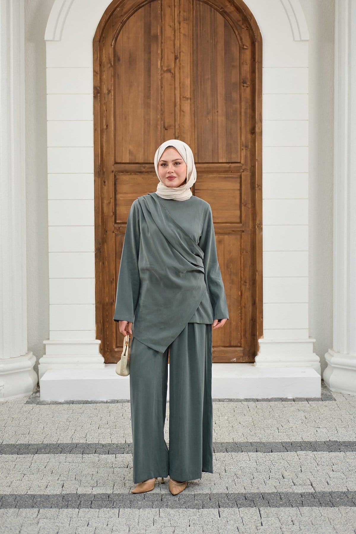 Yandan Dikişli Parça Detay Pantolonlu Takım Yeşil