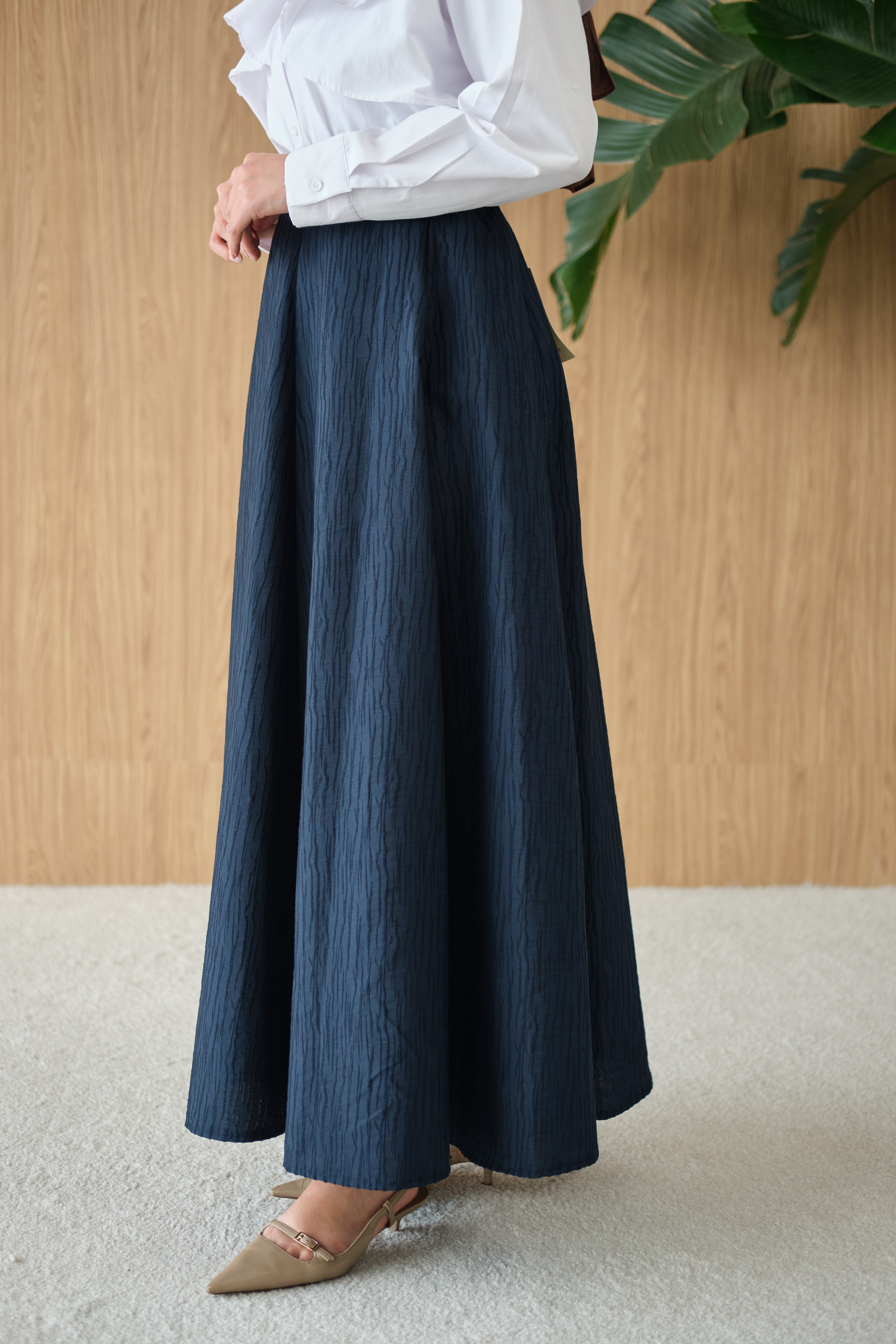 Yandan Fermuarlı Kendinden Desen Etek Lacivert