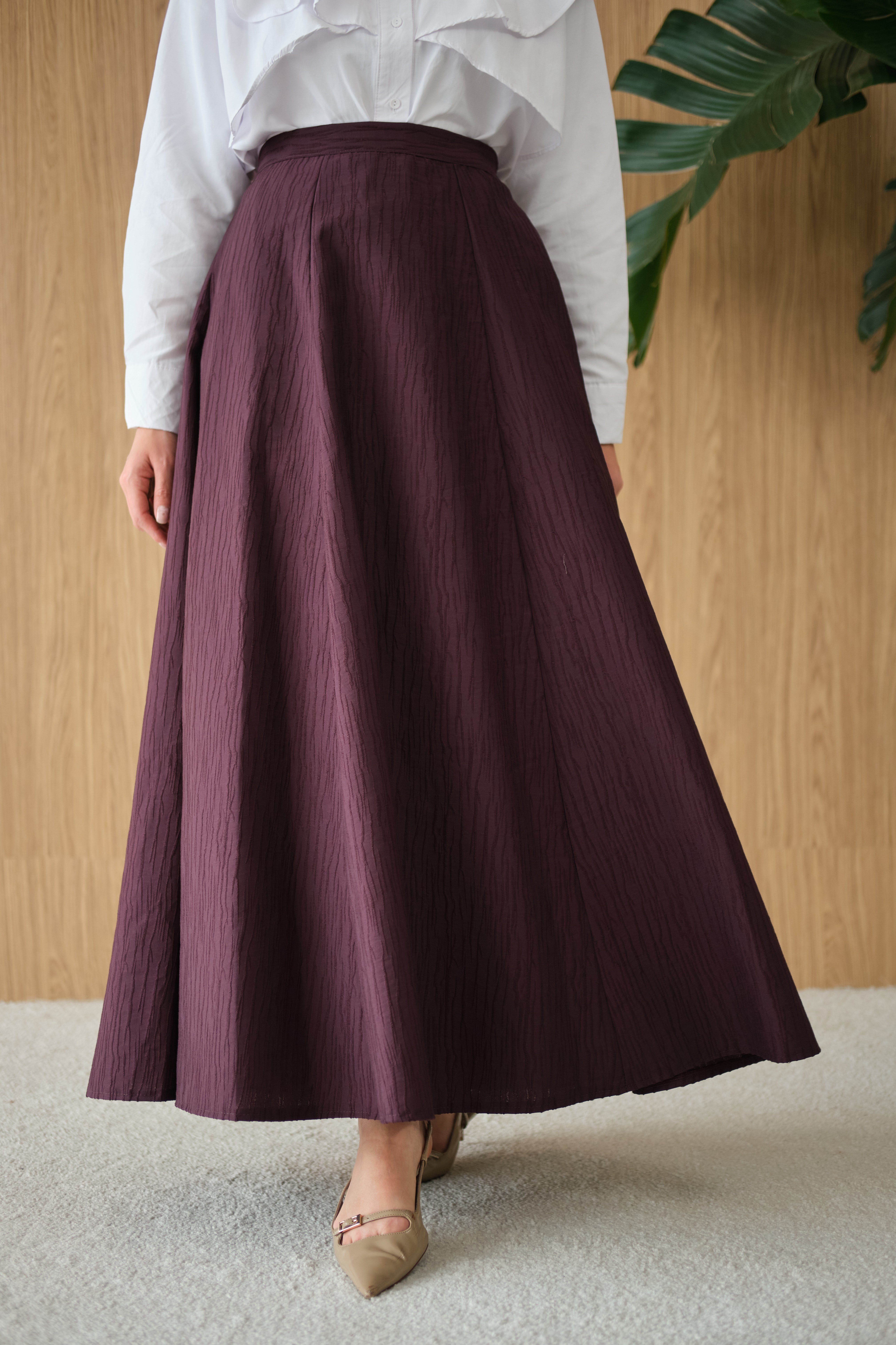 Yandan Fermuarlı Kendinden Desen Etek Mürdüm