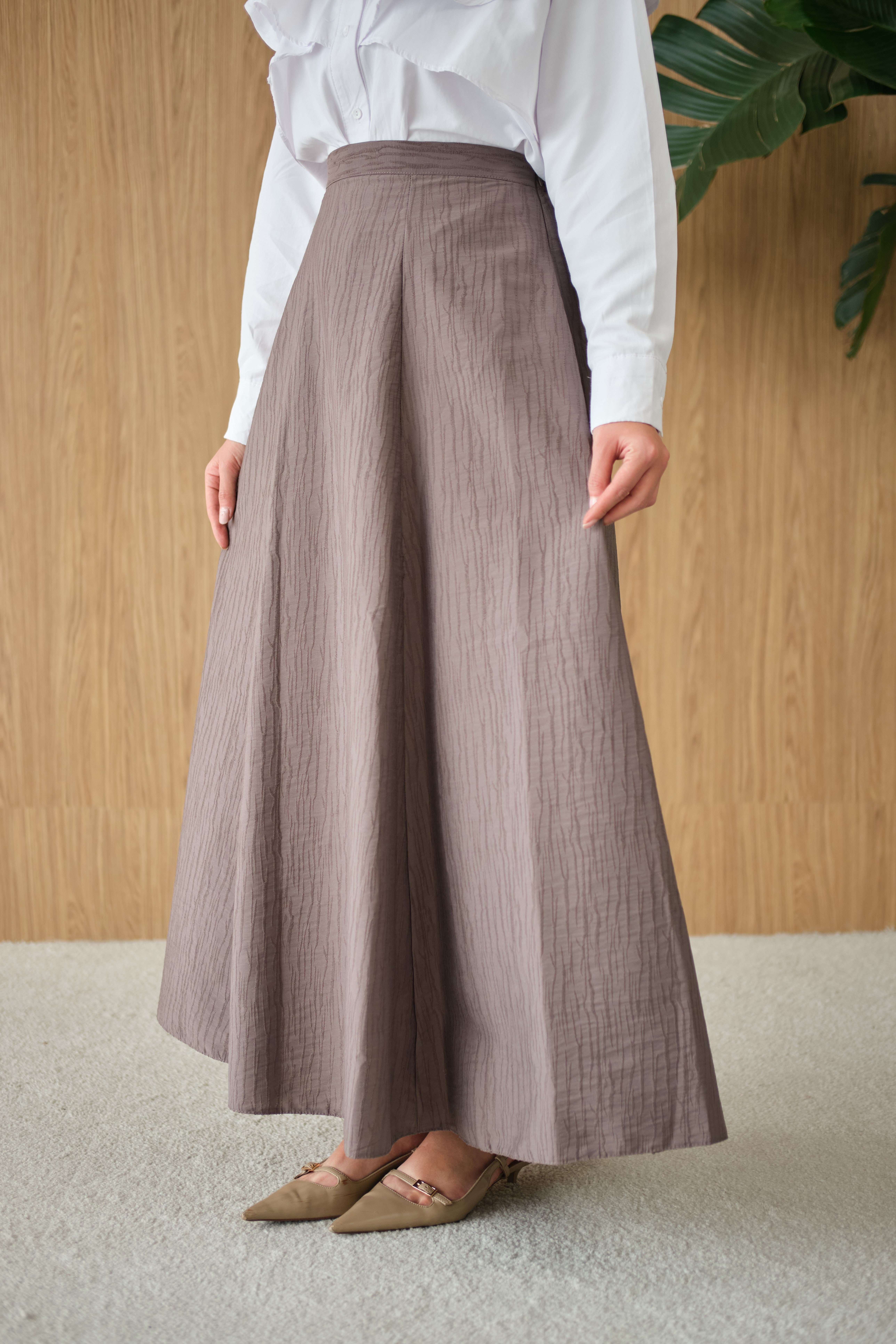 Yandan Fermuarlı Kendinden Desen Etek Vizon