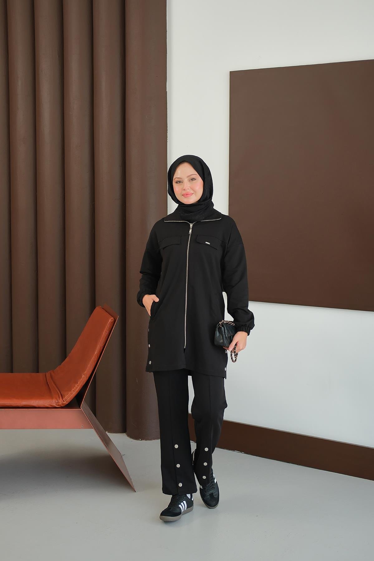 Yanları Çıtçıt Detay Fermuarlı Takım Siyah