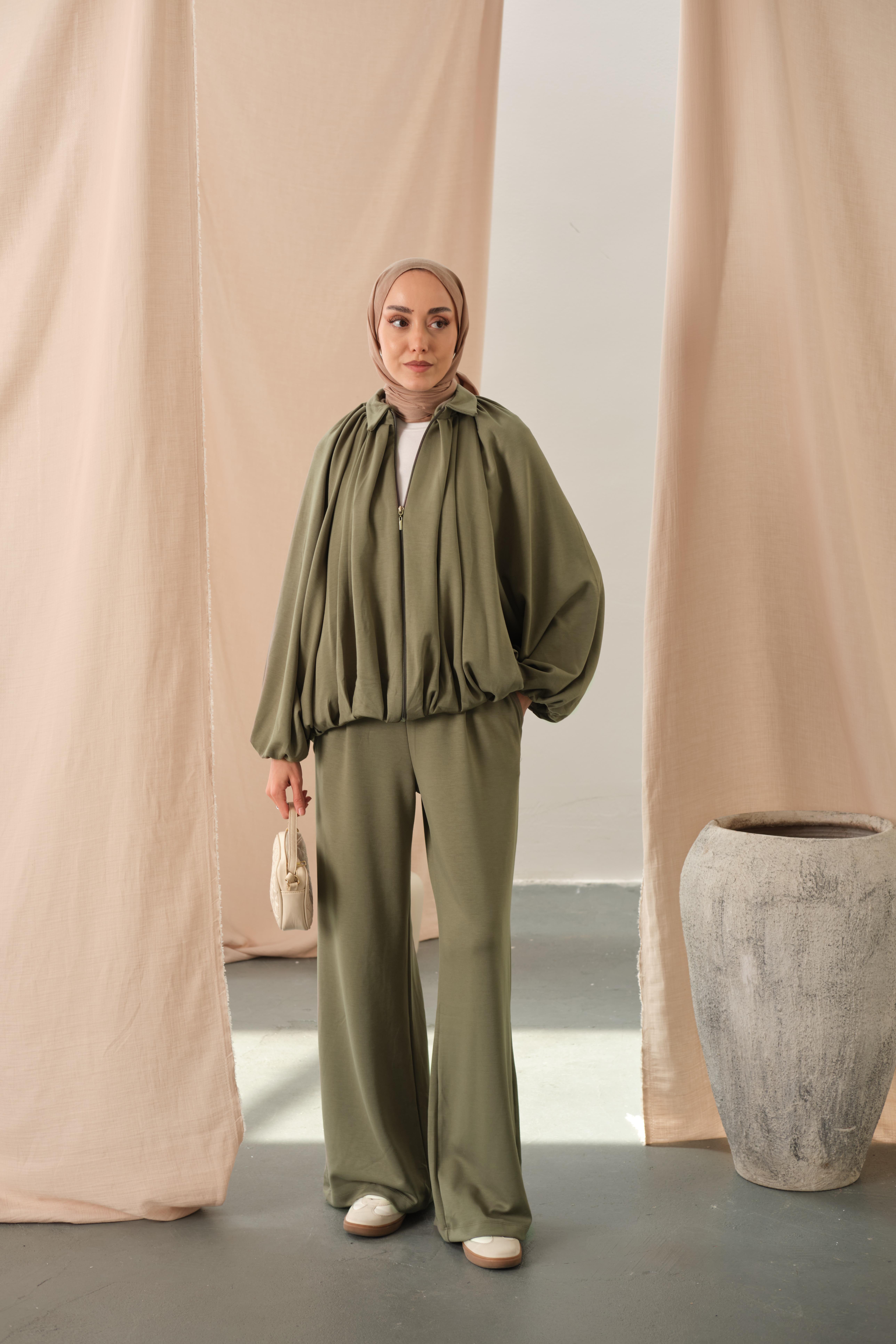 Yarasa Kol Volanlı Takım Haki Yeşil