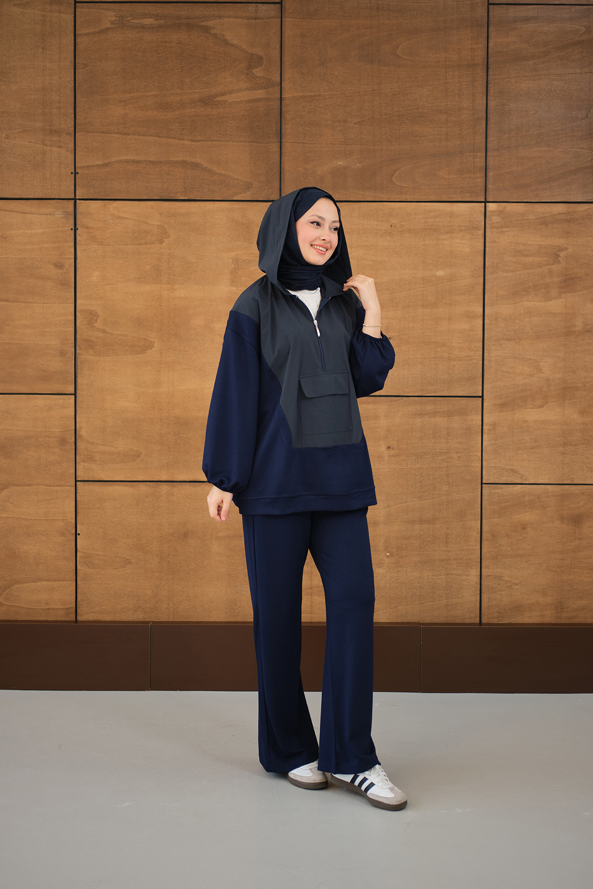 Yarım Fermuarlı Tek Cepli Pantolonlu Takım Lacivert