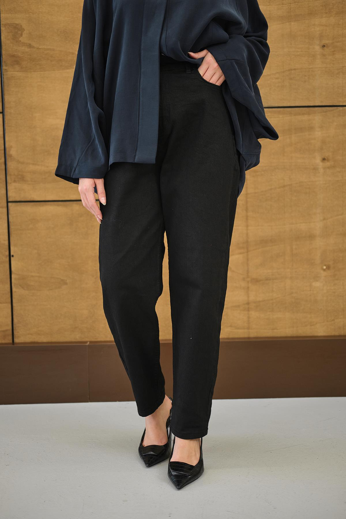 Yıkama Desen Pantolon Siyah
