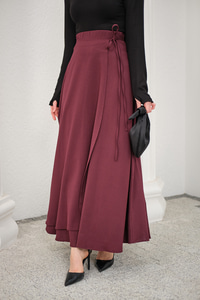 Yırtmaç Detay Kurdeleli Etek Bordo