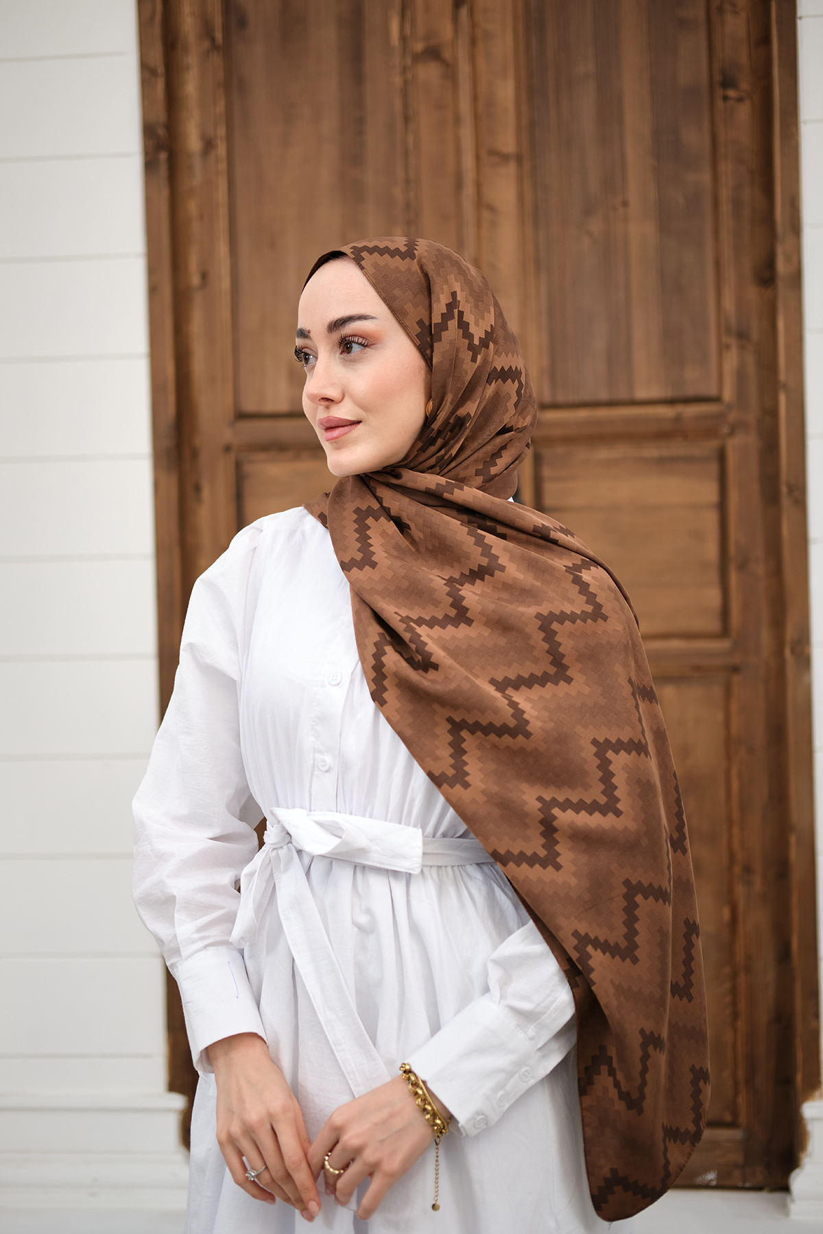 Zikzak Desen Şal Kahverengi