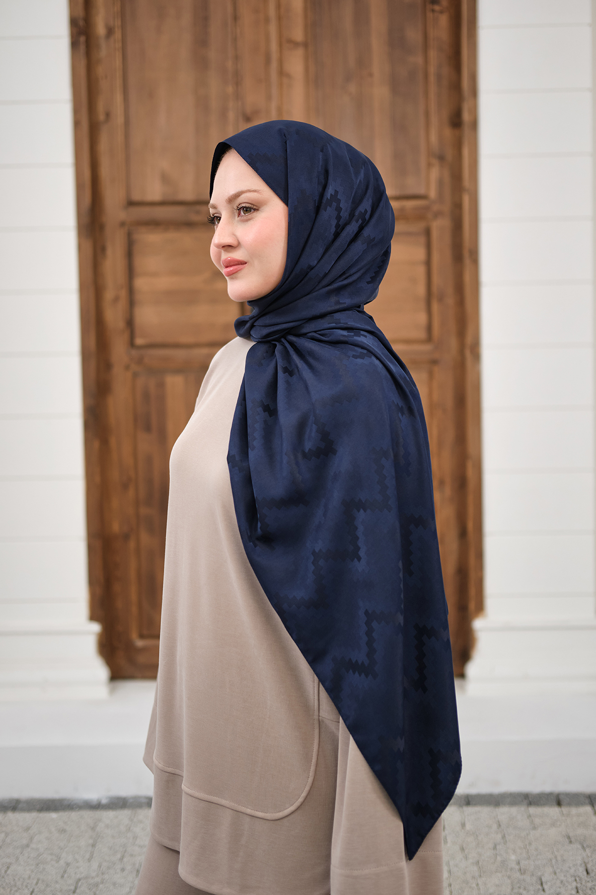 Zikzak Desen Şal Koyu Lacivert