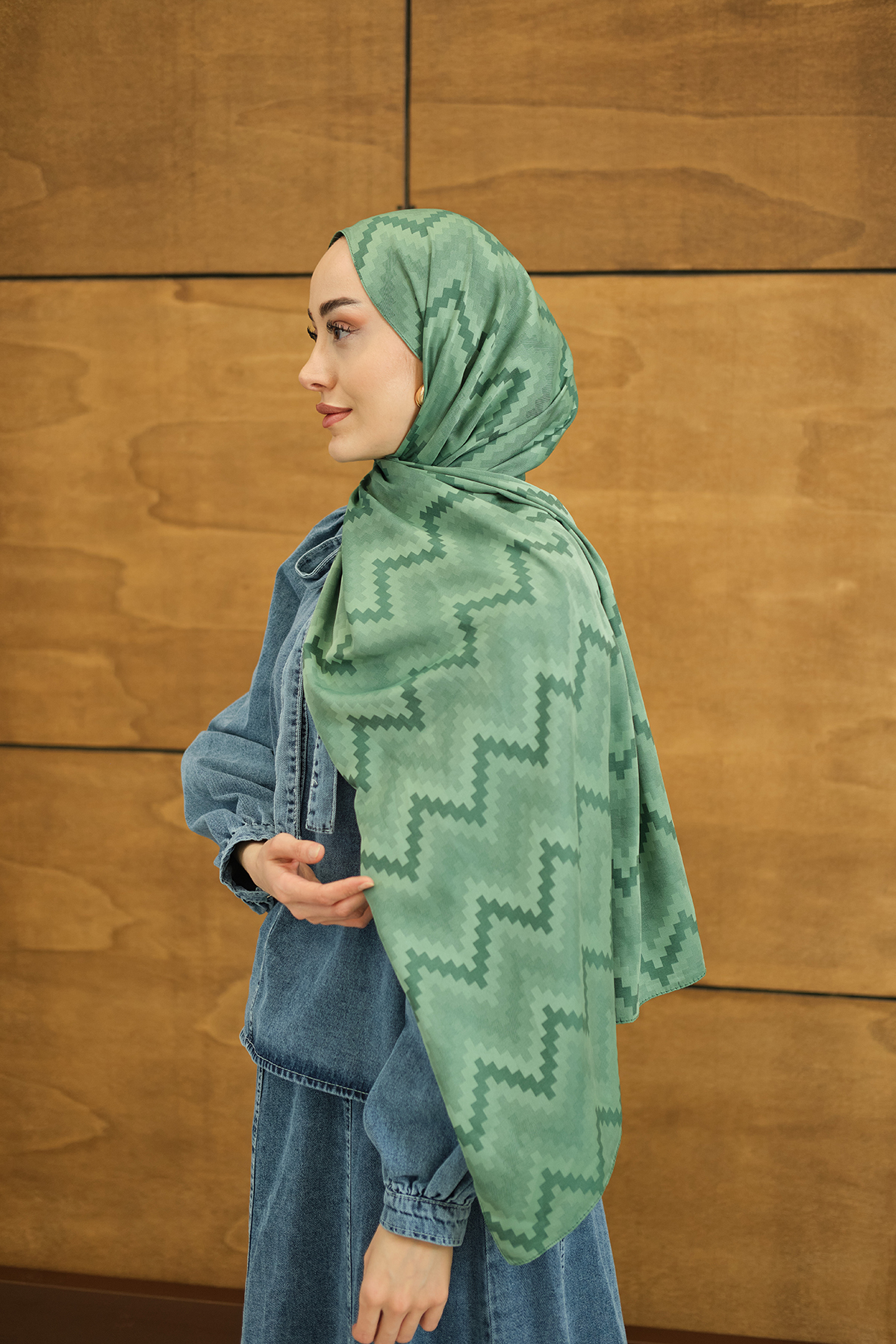 Zikzak Desen Şal Yeşil