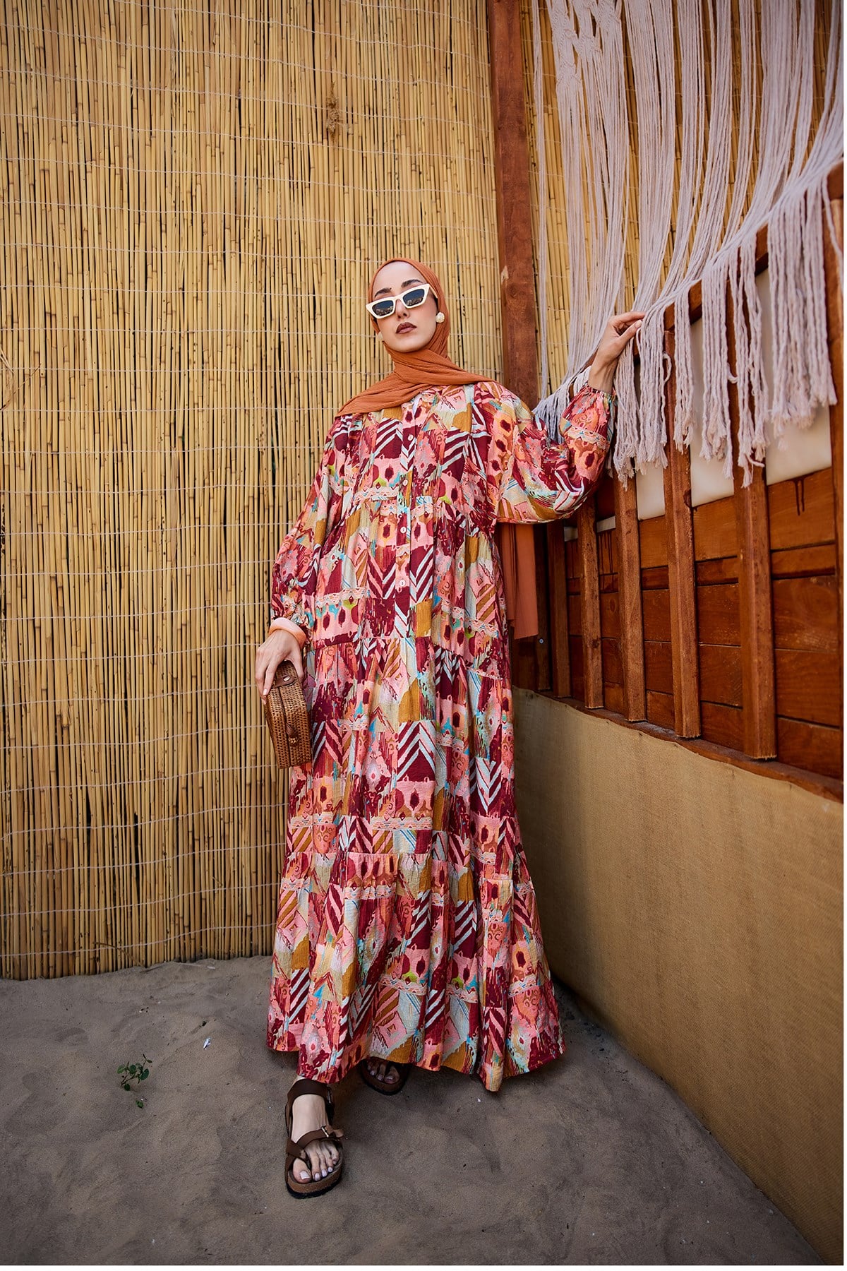 Zİkzak Desenli Elbise Bordo